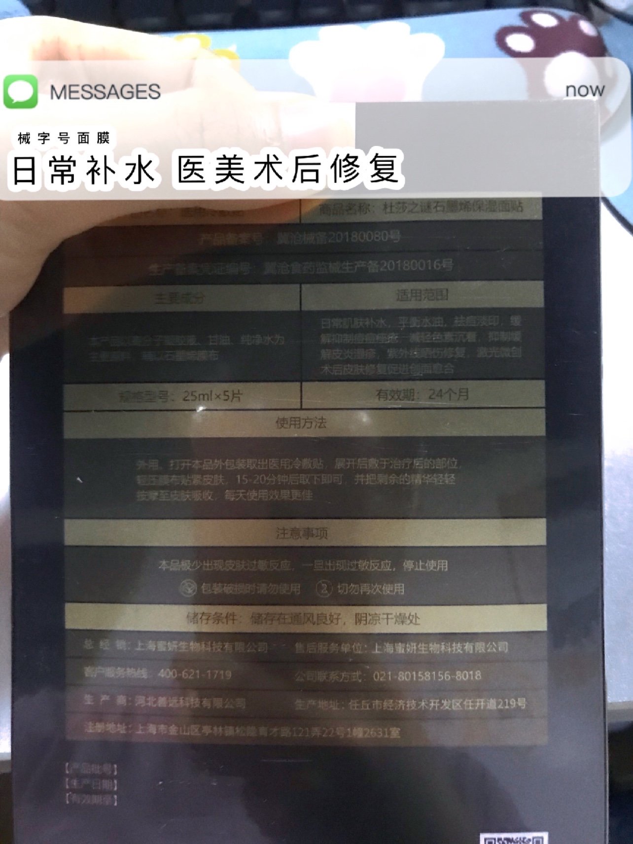 项目体验过程:杜莎之谜这款石墨烯保湿面膜,对比其他的械字号面膜,有以下独特的地方: