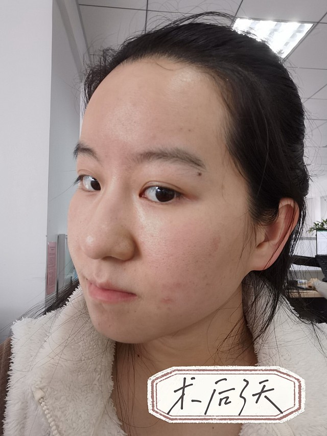 术后3天感受:术后第三天脸颊得近看才能看到细小的创口,面部明显泛黑的地方应该还是有点过敏产生的。