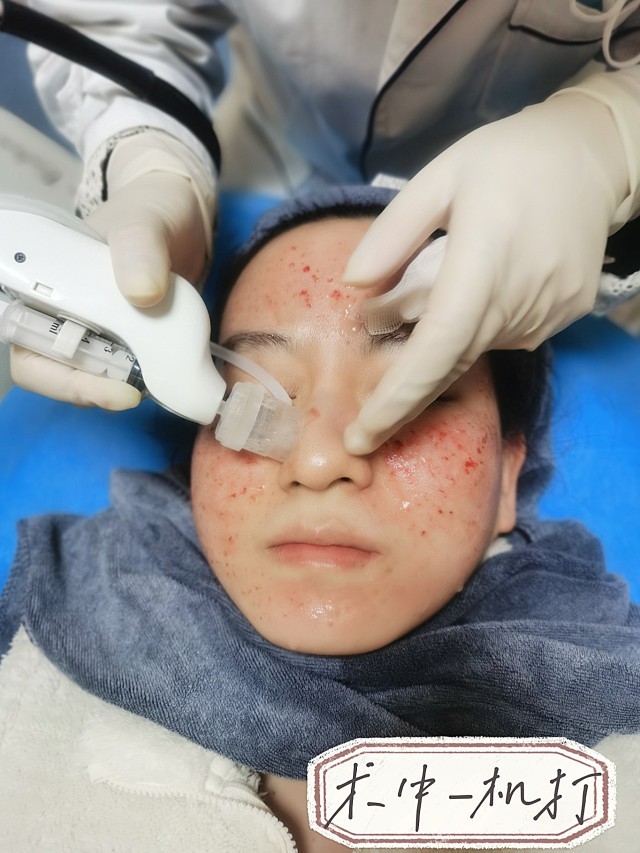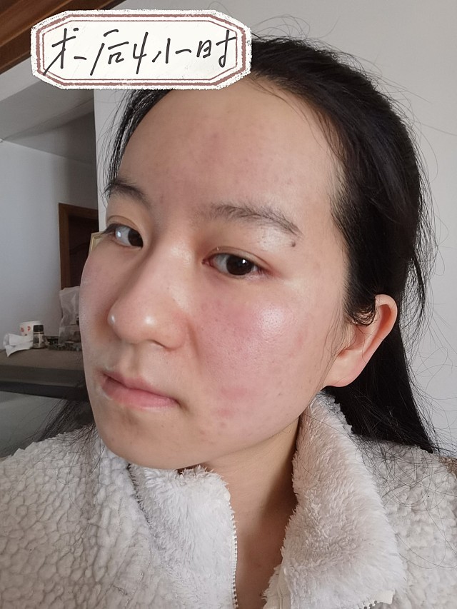 术后状态:刚打完的时候脸颊是血点,术后4小时后基本就是脸颊红,微肿有微小的创口,远看感觉自己特别沧桑。