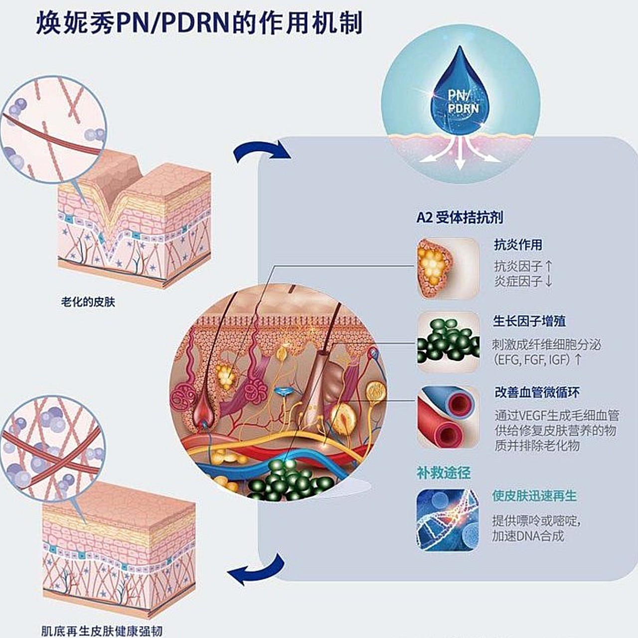 🌟2%高浓度PN的焕妮秀,这样的成分能够促进皮肤再生修复、促进胶原蛋白合成、增加细胞生长、改善血管微循环、抑制炎性因子分泌,可说是全面修复抗衰。