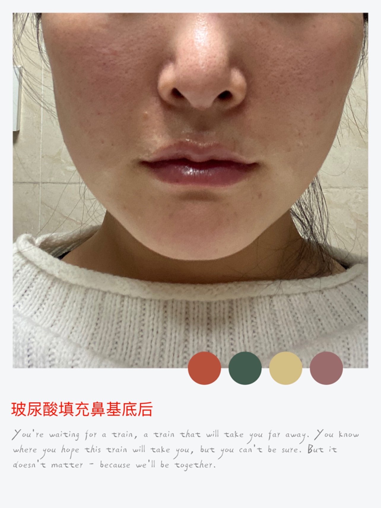 开心。到下午五点钟还是有肿肿的迹象,院长告诉我不要按压大笑,防止玻尿酸移位。