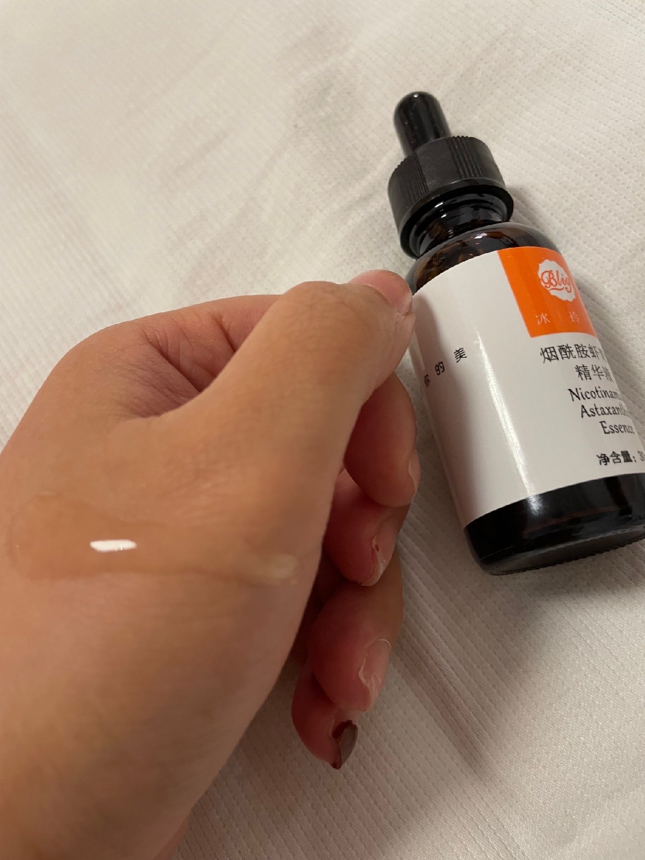 😻使用肤感:本身干性皮肤,到了冬季更是干上加干,这个👆🏻虾青素流动性非常强,上脸很滋润,味道清淡,使用感很棒,这个👆🏻可能是因为添加了烟酰胺,不像我之前用的黄色,这个是白色的液体~