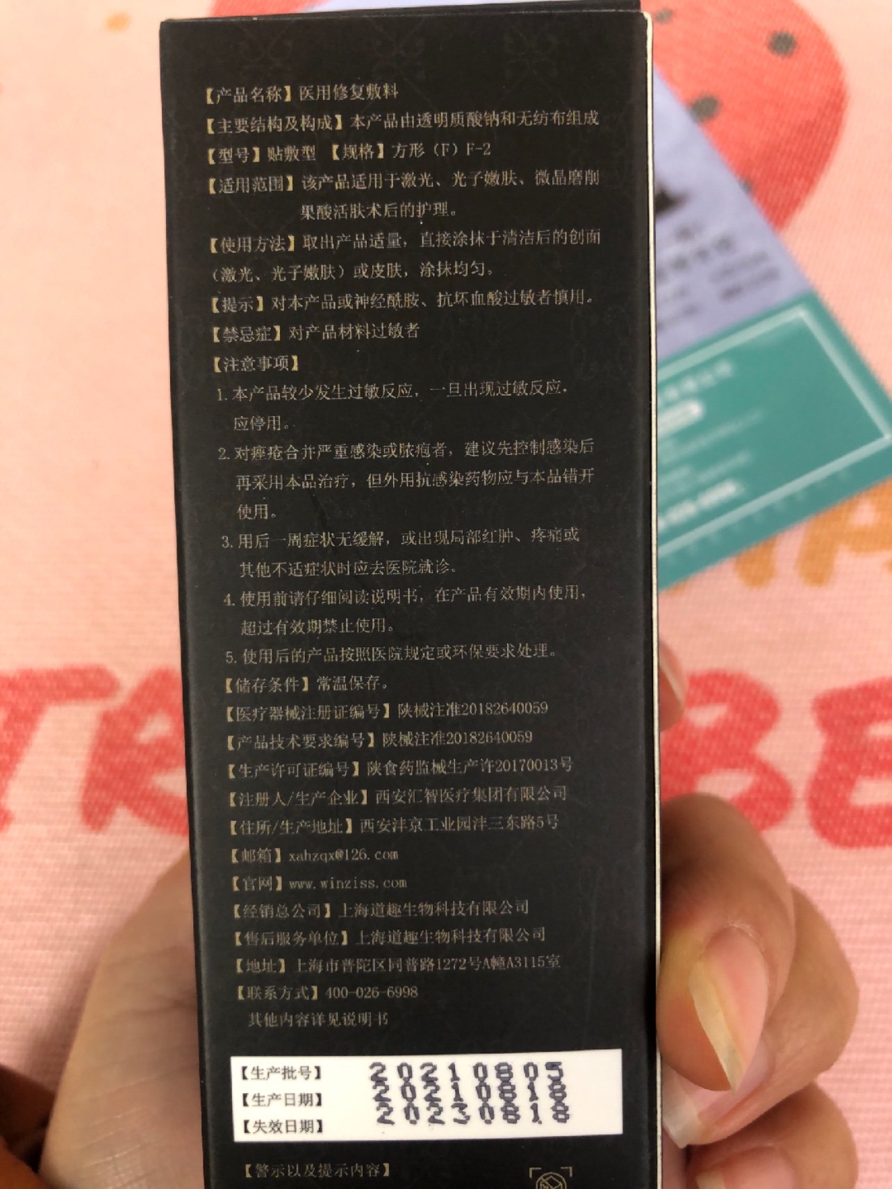 这款医用修复敷料外包装采用避光棕色瓶身,可以更好的保存里面的活性成分,二械的产品使用起来更加
