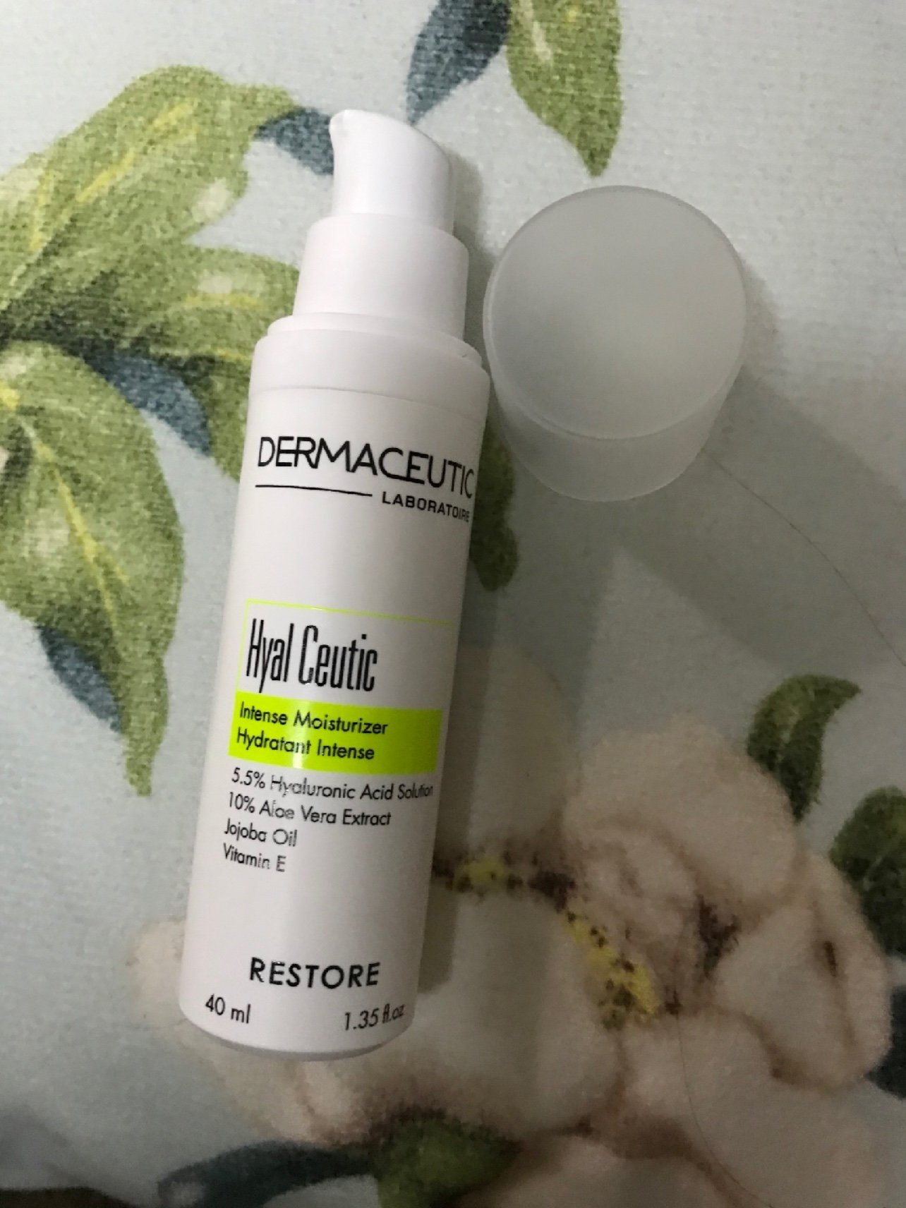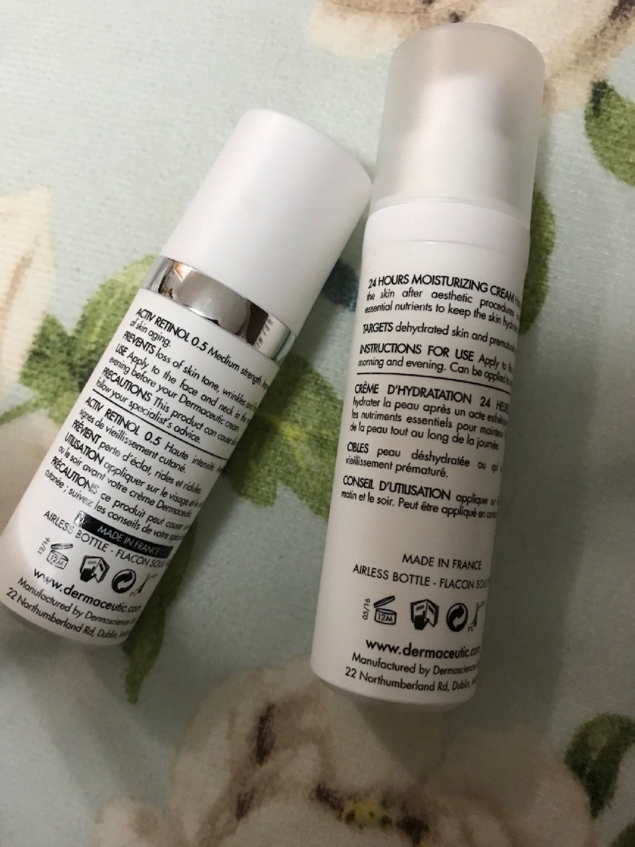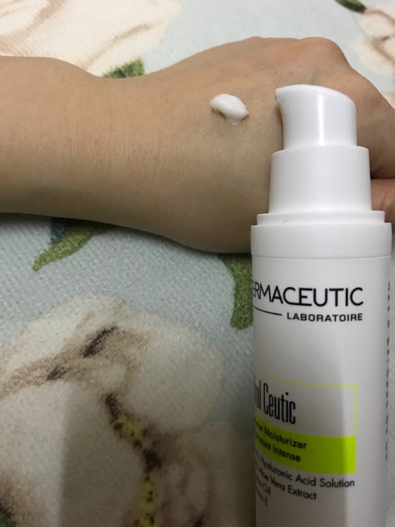 (3)使用高的那个绿色瓶子——迪玛丝缇修护保湿霜。可以配合一些手法按摩,加速吸收。