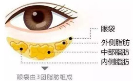 【症状】眶内脂肪堆积过多或下睑支持结构变薄弱,导致下眼窝脂肪膨出,或伴有轻微眼底细纹