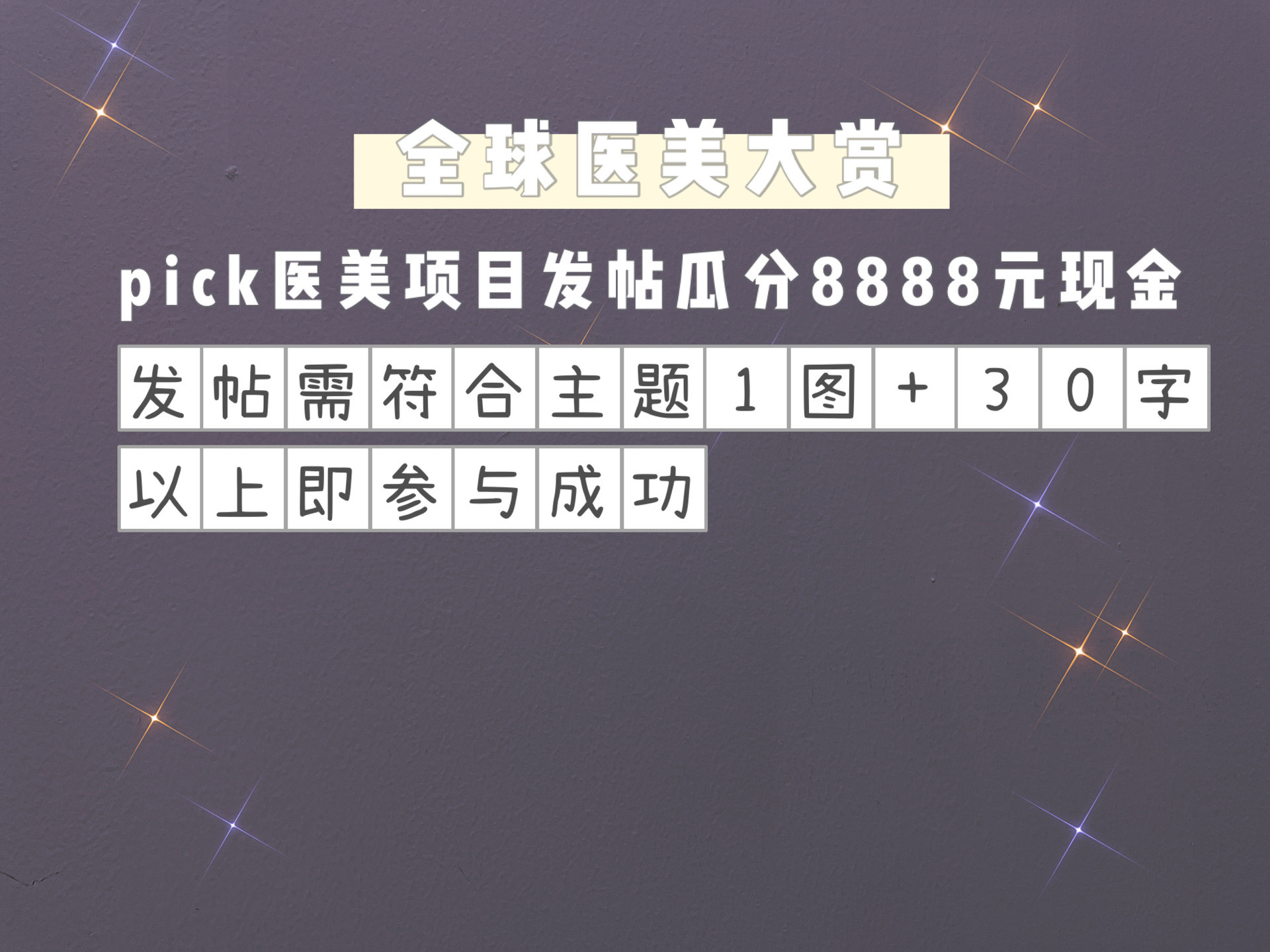 快来成为“医美大赏”评审员,百万奖励拿到手软!!1·为热门医美项目投票(点赞/评论/发帖/收藏)即成为评审员,每日可抽百万大转盘!2·为热门医美项目发帖,助它排名top5再瓜分8888元现金!