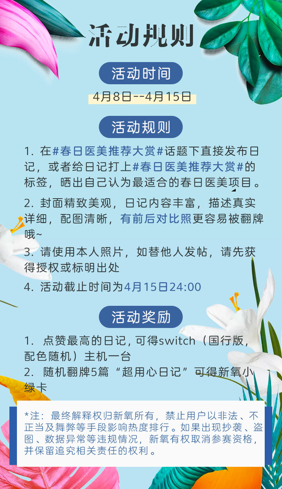 1.在#春日医美推荐大赏#话题下直接发布日记,或者给日记打上#春日医美推荐大赏#的标签,晒出自己认为最适合的春日医美项目